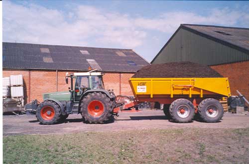 Traktor + dumper -Vervoer van allerhande produkten; grond,zand,compost,landbouwprodukten,....
